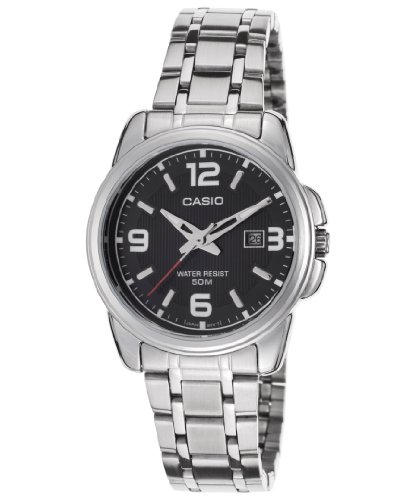 Brand, Seller, or Collection Name:Casio Model number:EAW-LTP-1314D-1AVDF Part Number:LTP+1314D.1A Model Year:2015 Item Shape:Round Dial window material type:Mineral Display Type:Analog Clasp:Deployment Case material:Stainless Steel Case diameter:33 millimeters Case Thickness:9 millimeters Band Material:Brushed and polished stainless steel Band length:Women's Standard Band width:18 millimeters Band Color:Silver-Tone Dial color:Black Calendar:Date Special features:Luminous, measures-seconds Item weight:4.64 Ounces Movement:Quartz Water resistant depth:50 Meters