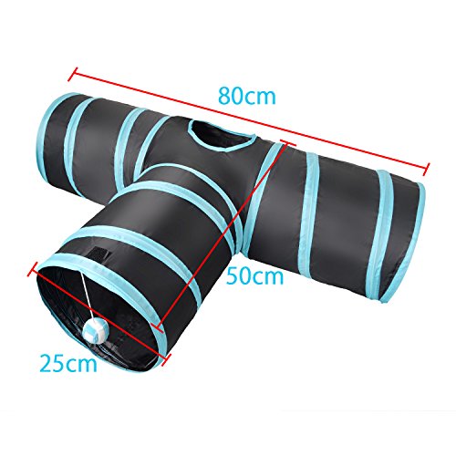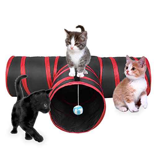 고양이 장난감 Chenci(찬시) 고양이 터널 접이식 T형 숨지 않겠 방 장난감 묘놀이 운동 부족 무료함 해소묘는등하며의 볼 부착 (레드)