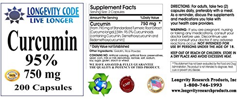 (Longevity Code Live Longer)/Vitamins Dietary Supplements/Herbal Supplements/DIRECT FROM USA/CURCUMIN 95% - 750 mg, 200 caps. Anti-Inflammatory