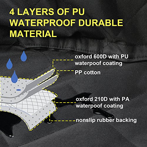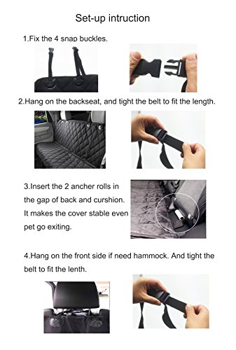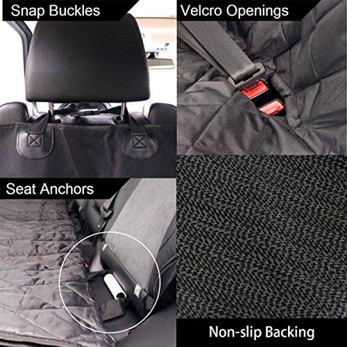 -. Feature : HAMMOCK DESIGN- best protect your seats from fur, dirt and claw marks. And also stop the pet going to the front seat. / ABSOLUTELY STABLE and NON-SLIP - Double Anchors to set the cover stable on the bench even for excited dogs. And the Thick Foam Non-Slip back keeps the cover absolutely still when pet jump on. / DURABLE and LUXURIOUS - PU Coated Oxford fabric ensure REAL Waterproof, Thick Buckles last for years. And all the materials are AZO free. / Fits All Standard Vehicles. Oversize: 54" x 58" with Convertible Strips. (Trucks and large SUV, please buy XL size) Quick to Install and Remove: Most People take within 1 minute as tested. / ★★★★★ 30 days 100% MONEY BACK GUARANTEE - Love your seat cover or your money back, no questions asked, just a prompt, courteous refund.