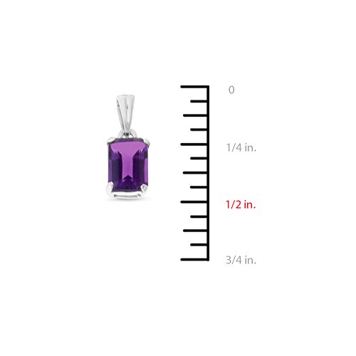 -. Title : 14K White Gold 5 x 7 mm. Emerald Cut Genuine Amethyst Earrings + Pendant Set With Square Rolo Chain