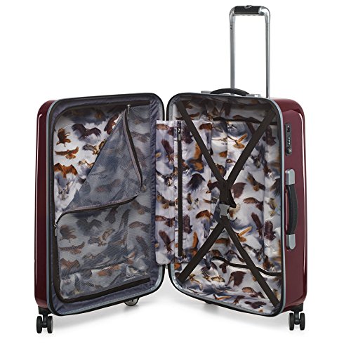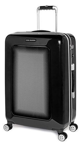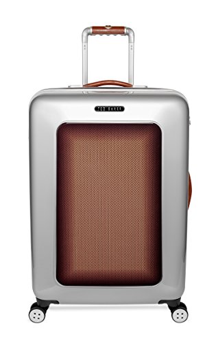 -. Feature : Contrast herringbone panel / Four smooth-glide spinner wheels / TSA-approved combination lock. / Two-way zip-around closure / Aluminium detailing and scripted Ted Baker branding