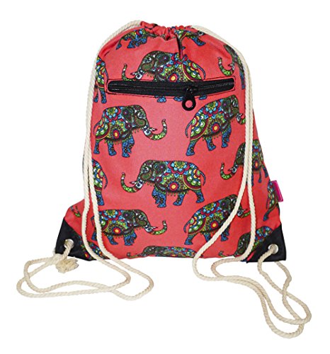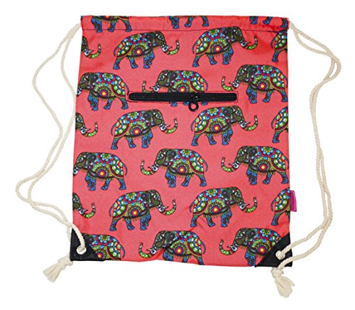 Product Description The gorgeous print and sturdy polyester/nylon blend makes this hard working backpack a go to option for any outing. It's spacious enough to fit a towel and sunscreen in for a cute beach bag, a change of clothes for a gym bag, or water and snacks for a daypack for an afternoon hiking excursion, while housing many of your daily needs as well! In addition, many have found that this makes a terrific backpack for school or even as a day to day purse if you demand a little more space. This stylish drawstring backpack is great to just throw over your shoulder and go! 0