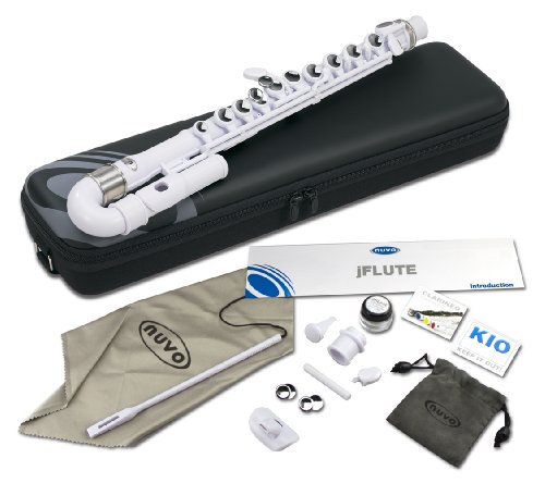 Nuvo N200JFWT jFlute Kit with Curved Head, Case & Accessories , White with Stainless Steel Collars