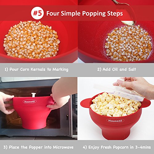 Microwave Air Popcorn Popper - Silicone Popcorn Maker Bowl for Home - Free of PVC & BPA - Healthy Instant Kernels Popping - Save on Popcorn Machine and Bags
