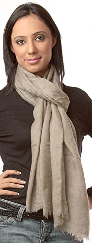 (Exotic India)/Accessories/Scarves/DIRECT FROM USA/Exotic India Plain Reversible Pure Pashmina Stole as an - Color Camel