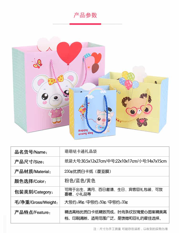 韩版礼品袋 卡通礼物包装袋子 生日回礼袋 手提袋纸袋礼物袋