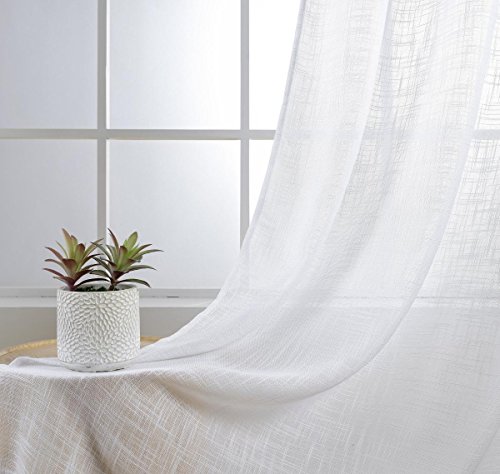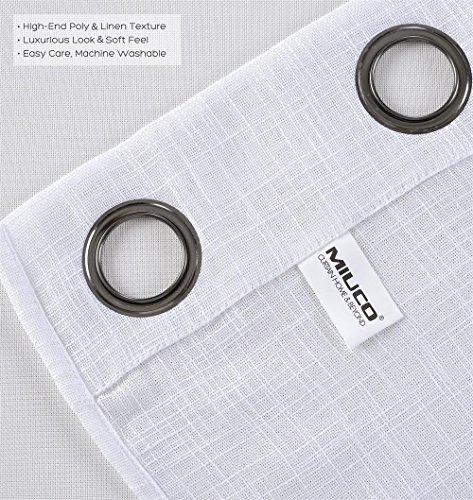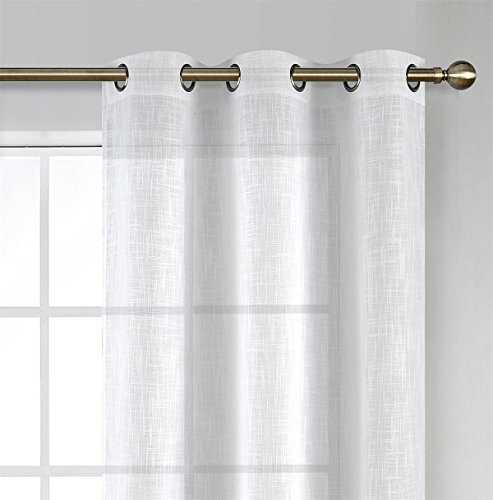 Miuco White Sheer Curtains Poly Linen Textured Solid Grommet Curtains 84 Inches Long for Living Room 2 Panels (2 x 37" Wide x 84" Long) White