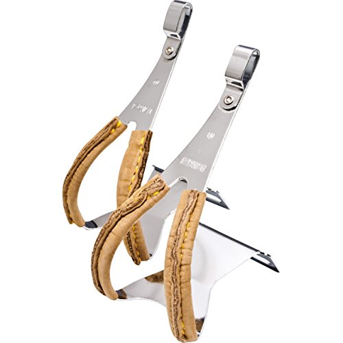 MKS Super toe clips with leather, steel-medium