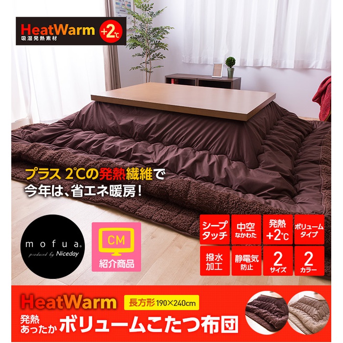 Rakuten 【11/1 13:59까지!5%OFF쿠폰 발행 중】난로 이불 직사각형 부드럽게 난로 이불후 걸이 난로 이불 모후아 mofua HeatWarm발열 따스한 볼륨 난로 이불(발수 가공)(