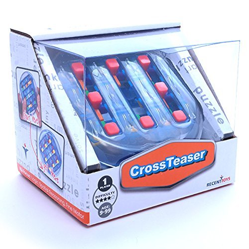 -. Binding : Toy -. Brand : Recent Toy -. Feature : Difficulty: Medium / Size: 4.75"x4.75"x1" / Solve by getting a solid color on the top and bottom / The space in the middle will be open Start by pressing down on any peg to push it into the open space / With every move, the color facing will change -. IsAdultProduct : 0 -. Label : Recent Toy -. Manufacturer : Recent Toy -. ProductGroup : Toy -. ProductTypeName : TOYS_AND_GAMES -. Publisher : Recent Toy -. Studio : Recent Toy -. Title : CrossTeaser RT Sliding Puzzle Brain Teaser Twisty Toy NEW