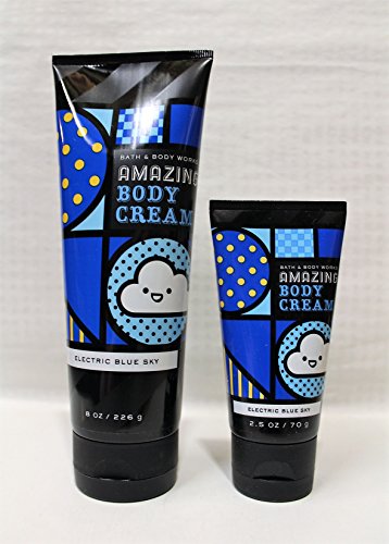-. Binding : Misc. -. Brand : Bath & Body Works -. EAN : 0659424875840 -. Feature : Electric Blue Sky - A soft, dreamy white birch, blue sage, winter sky / (1) Body Cream ~ 8 oz. ~ $13.50 & (1) Travel Size Body Cream - 2.5 oz - $6.50 - We think this body cream is truly AMAZING. It goes on like a dream and melts into skin quickly for 24-hour moisture with spectacular Shea Butter and Vitamin E. / Usage: Squeeze quarter-sized dollop into palm & massage into skin for our deep moisture. / 1 Full-Size & 1 Travel Size -. IsAdultProduct : 0 -. Label : Bath & Body Works -. Manufacturer : Bath & Body Works -. MPN : EBS2 -. PartNumber : EBS2 -. ProductGroup : Beauty -. ProductTypeName : BEAUTY -. Publisher : Bath & Body Works -. Studio : Bath & Body Works -. Title : Bath & Body Works - One for home & One for Travel –Body Cream Set - Electric Blue Sky -. UPC : 659424875840