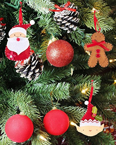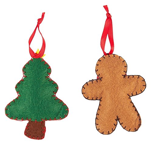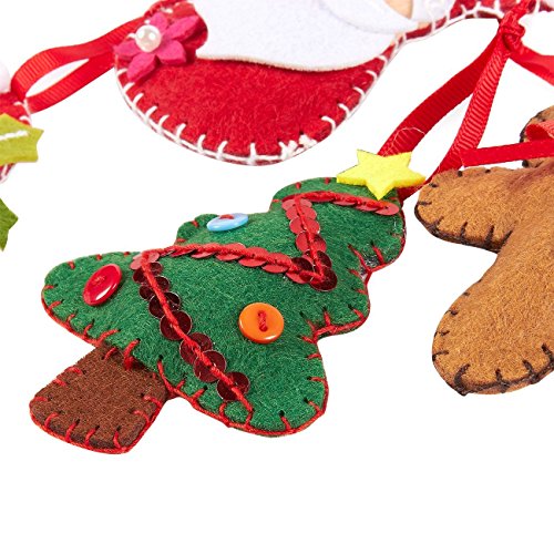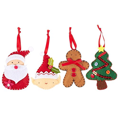 4 Pieces Felt Applique Christmas Ornament Kit - Includes Santa, Elf, Gingerbread Man, Christmas Tree