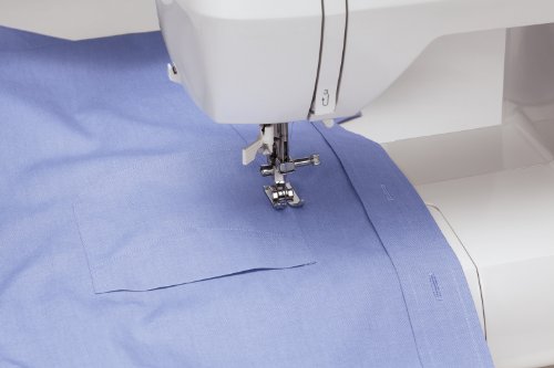 -. Feature : Automatic needle threader--sewing's biggest timesaver / 60 built-in stitches--essential, decorative, stretch and four fully automatic one-step buttonholes / Automatic stitch length and width for strong seams and to prevent fabric puckering / Easy-to-read LCD screen / Extra-high presser foot lifter allows more clearance when sewing multiple layers of fabric