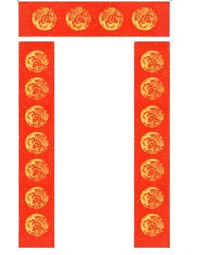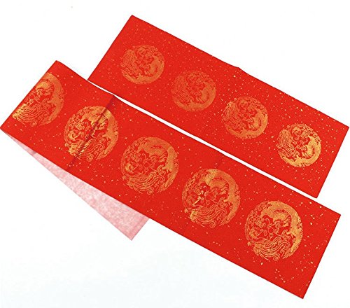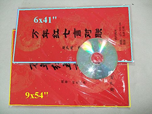 [Description] Includes: 10 sets of 10 pair for the left_ right_ (24x118cm) and top. Left_ right: 17x104 cm ( 6x41``). Top: 17x70cm (6x27.6``) For 7 vertical characters. Excellent piece of paper: half done rice paper of 10000 years (Xuan paper)* See size comparison with a CD on the photo (not included)
