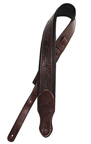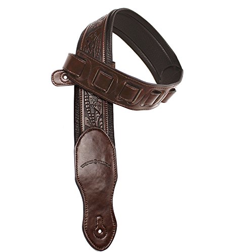 -. Title : Walker & Williams G-110 Mahogany Brown Padded Guitar Strap with Embossed Tooling