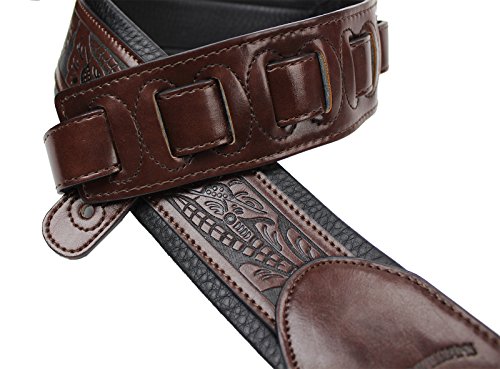 -. Feature : Premium Quality Handmade Strap For Guitar or Bass / Mahogany Brown Top Welt with Embossed Tooling / Ultra Comfortable Padded Black Glovesoft Back / Double Reinforced End Caps / 2.75" Wide and Adjustable From 44"-54"