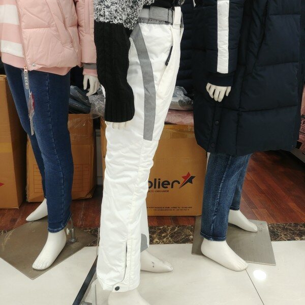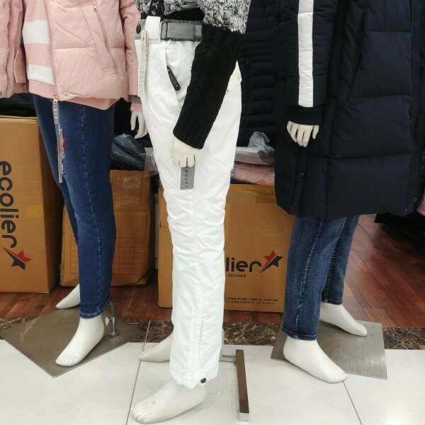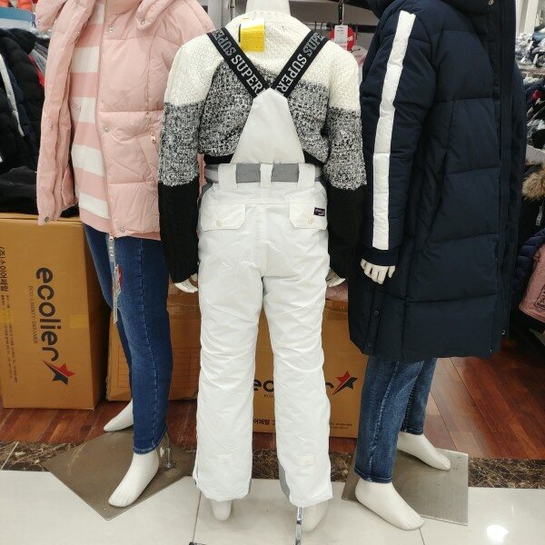 화이트 스키 바지입니다.중간 중간 그레이와 인디핑크의 포인트가 엉증맞게 놓여져 있습니다.