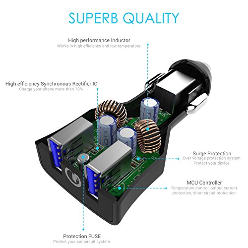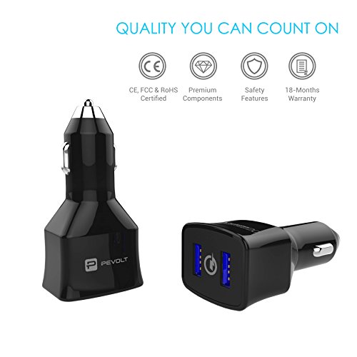 -. Feature : Super compact and sturdy construction. uick Charge 2.0 Car Charger is made of top grade fire proof materials and engineered to fit for your car cigarette lighter perfectly. So, it never drives you crazy by sliding, getting stuck or loosing contact. / Extra Free Bonus with awesome discount! Enjoy high quality, extra-long 3.3 ft Micro USB Cable worth $10, absolutely for free with every purchase and feed enough current at high speed for your hungry devices. Also, you can buy 2 or more Pevolt Quick Charge 2.0 Car Chargers to SAVE additional 10% at checkout (No coupon needed). / Broad Compatibility. Pevolt 36W Dual USB 2.0 Car Charger is compatible with Droid Turbo, Google Nexus 6, HTC Butterfly, HTC One (M8 & M9), LG G2, G4, Flex 2, Samsung Galaxy Note 4, 5, Edge, S6, S6 Edge, Sharp Aquos Pad, Zeta, Sharp SH01G/02G, Sony Xperia Z2, Z3, Z4, Z5, Z5 Compact, Z2 Tablet, Z3+, Z4 Tablet. (Not compatible with iPhone 5, 5s, 6, 6s to deliver 75% faster charge, but can charge with fastest possible speed). / 100% satisfaction Guaranteed. We would like to earn your business for a lifetime. So we offer 100% MONEY BACK GUARANTEE and for any reason should you fall out of love with it, return it for a refund. / 75% fast charging. Your favorite Pevolt USB Car Charger guarantees 75% faster charging compared to other standard chargers. Its rapid charging circuitry optimizes the voltage to meet the power requirements of your device and bumps the voltage up as high as 20V without hurting the battery of your smart phone to enable fast charge.