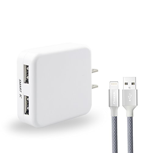 -. Title : Zteanok USB Charger,2.4A 12W Dual USB Portable Travel Wall Charger Adapter with Foldable Plug+6FT Long Apple Lightning Cable Charging Cord for iPhone Android(White)