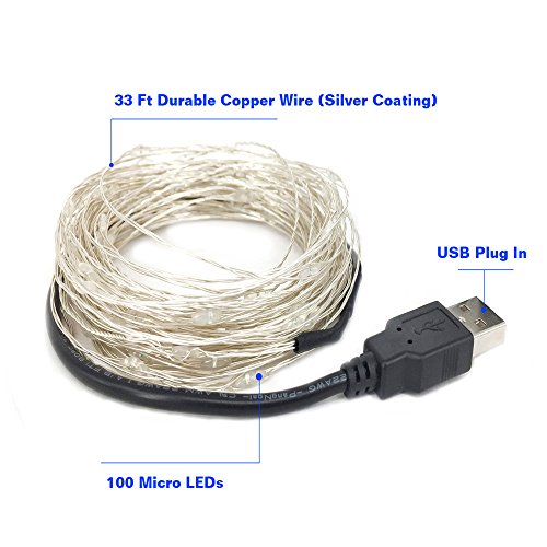 - Flexible & Durable: 100 micro super bright LED lights on 33Ft long ultra-thin copper wire with 3 inches distance between LED bulbs, you can use it to cover virtually any area or structure and increase the visual appeal in your setting