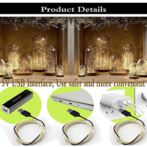 - USB Power: USB powered for application, free from the hassle of plugging to fixture and the eco-unfriendly batteries. You can light up the LED string lights with your power bank or laptop and use it almost anywhere you like such as camping, indoor, bedroom, party, wedding, cafe, commercial decoration etc