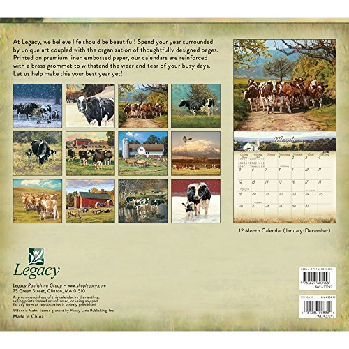 -. Feature : 2017 12-month wall calendar measures 13 3/8 x 12 closed; opened calendar is 13 3/8 x 24 / P.R.Inted in exquisite full color on High quality linen-embossed paper; features a grommet-reinforced drilled hole to ensure tear-free hanging / Features the delightful rural-themed artwork of Bonnie Mohr / Packaged in a protective sleeve that showcases the cover image on the front and each monthly image on the back / Legacy invites you to explore their fresh collections of coordinating calendars, to-do-lists, notebooks, address books, recipe boxes and more