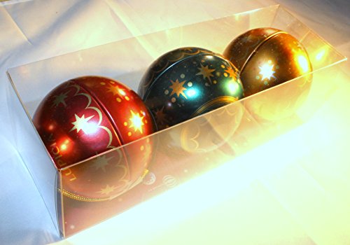 Tin ornaments filled with Decaffeinated tea and Rooibos Tea.