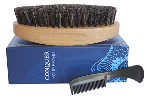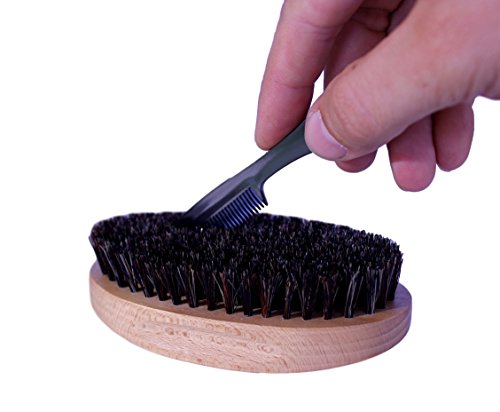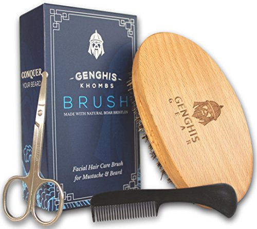 Genghis Gear Beard Brush 3 piece kit - Natural Boar Bristles - Men's Grooming Comb for Mustache w/ Scissors - Trains, Conditions, Styles while evenly...