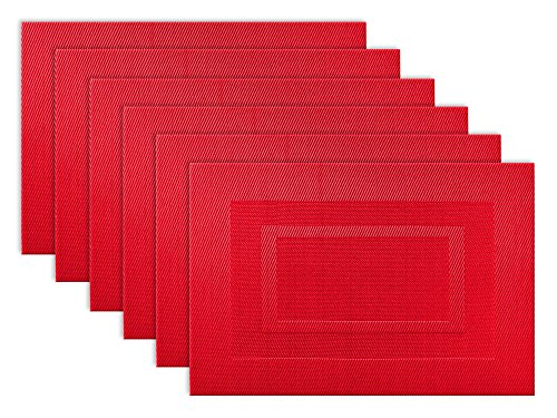 - Set of 6 vinyl placemats measure 13x19" each and can be wiped clean with a damp sponge or cloth