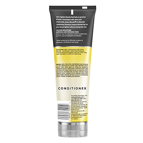Hydrate and lighten for a lighter blonde. Sheer Blonde Go Blonder Lightening Conditioner, with citrus and chamomile, restores moisture and renews softness, giving you a shimmery, sunlit blonde. For all shades of natural, color-treated or highlighted blonde hair.Feature
