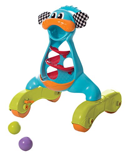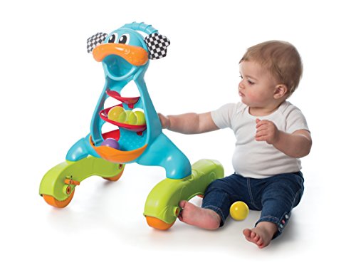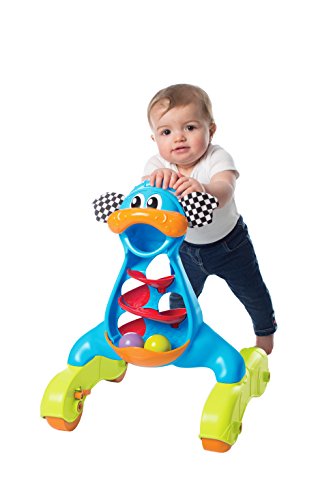 Come and Walk with me! This Activity Walker is perfect for any baby that is ready to get up and get walking! He comes with 3 colored balls and a twirly whirly ramp where you can drop the balls in and watch them race. The large easy-grip handle will help support your baby as they pull themselves up and push. This fun walker also has an added brake safety feature to slow down movement depending on the developmental stage of baby. What are you waiting for? Come and walk with me! Buy Playgro, your favorite toys to Play & Grow!