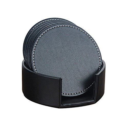 -. Feature : Europäischen Stil & modernes Design - der schwarze Farbe Untersetzer-Set hat weiße Accent Stitching, um / Geeignet für alle Tassen - für Bier-Gläser, Whisky Gläser, Flasche, Becher, Tee Kaffee Becher verwendet, Rotwein / wettbewerbsvorteile - jede Seite ist aus Leder zusammen genäht und von weißen Gewinde das sieht wirklich nett; / Beste Qualität - diese schwarz Faux Leder Untersetzer kommen in einem eleganten runden Design, perfekter A M / Ideales Geschenk - Die Leder Tasse Untersetzer kann an Ihre Freunde oder Verwandte als ein Schreibtisch Zubehör;