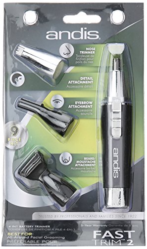 Andis EasyTrim2 9-Piece Personal Ear, Nose, Eyebrow and Beard Trimmer Kit, Gray, Model MHT-4 (22720)