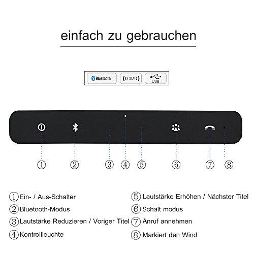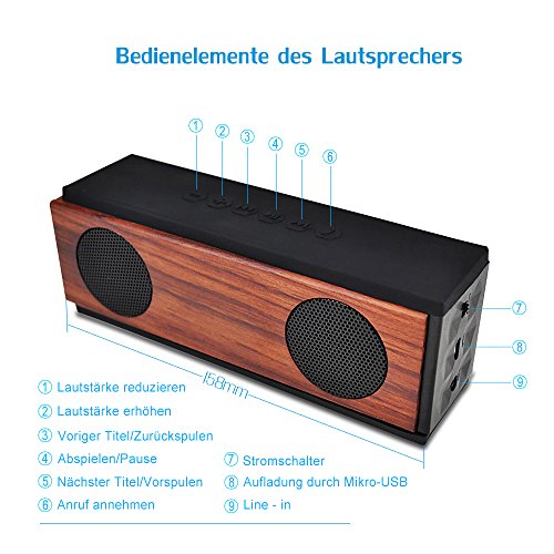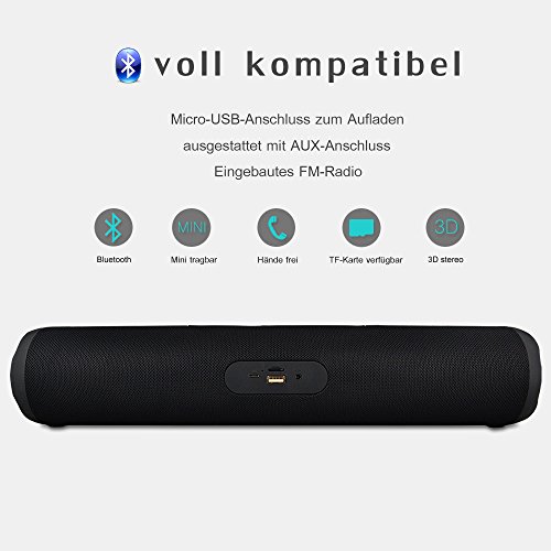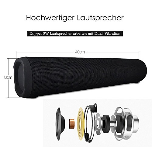 HANDS-FREE CALLS + TRAGBARE GROSSE: Mini-Lautsprecher kann sogar als Freisprech-Kit mit integriertem Mikrofon verwendet werden, das eingebaute Mikrofon mit Rauschunterdruckungstechnologie ermoglicht es Ihnen, ordnungsgemass in bidirektionaler Weise zu kommunizieren, Ihren Gesprachspartner richtig zu verstehen. Lautsprechergrosse: 158 x 45 x 58 cm, fast die Grosse der Handflache, geeignet fur den Einsatz zu Hause und zum Mitnehmen.