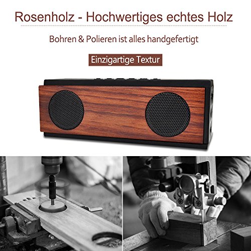 NETTES AUSSEHEN UND GUTE VERPACKUNG: Gut verarbeitete Holz-Look-Lautsprecher ist optisch ein kluger Einrichtungsgegenstand fur die Wohnung. Rose-Holz-Abdeckung, Bohren und Polieren alle in hochwertigen handgefertigten, jeder Lautsprecher hat eine einzigartige Textur aus echtem Holz, ganz besonderes, Vintage und elegant. Einfache, gut gestaltete, schlichte schwarze Verpackung macht es zu einem idealen Geschenk / Geschenk fur Ihre Familie oder Freunde oder belohnt dich selbst.