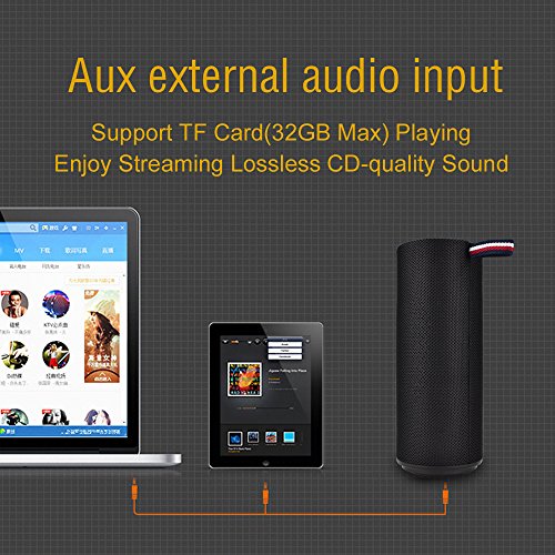 BLUETOOTH MUSIC + AUX-IN + SUPER LONGWORKING TIME: Kompatibel mit Bluetooth-fahigen oder nicht-Bluetooth-Geraten uber 3,5 mm Audiokabel / AUX-IN-Buchse. Sound-Box funktioniert perfekt und problemlos an die Musikquelle mit den mitgelieferten Kabel-Buchsen oder Bluetooth. Verbindung mit Handy, Laptop, Tablet oder anderen Bluetooth Geraten uber Bluetooth ist Kinderspiel. Gut entworfene 700mAh wiederaufladbare Lithiumbatterieaufladung uber USB-Kabel, stutzt bis zu 8 Stunden des Musikspiels.