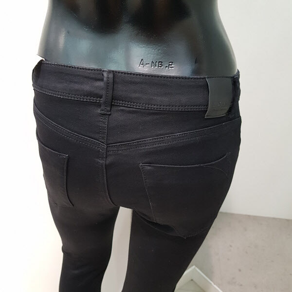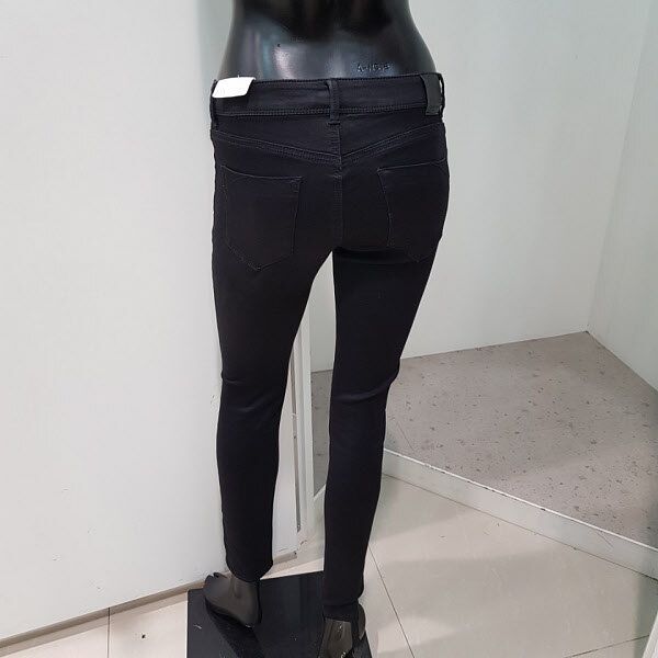 여자 블랙 주자로우 미드라이즈 스키니 팬츠 입니다.허리에서부터 밑단까지 다리라인이 그대로 드러나는 실루엣으로 전 연령층이 대중성있게 입는 FIT으로,타이트한 착용감을 보완시켜 스판성이 뛰어납니다.