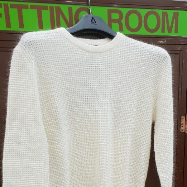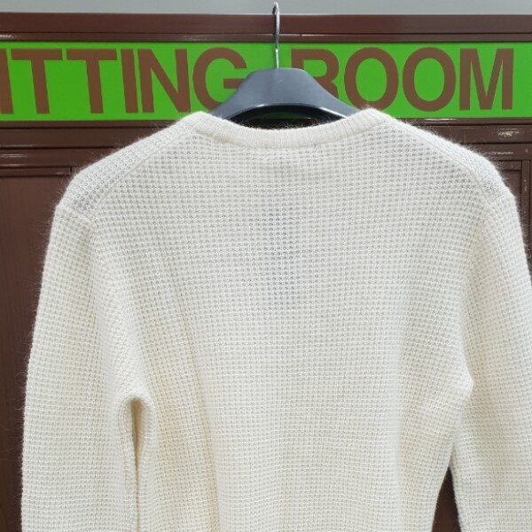 울이 함유된 부드러운 원사를 사용하여 가볍게 감싸지는착용감이 우수한 제품입니다, 볼드한 변형 골무늬 조직으로 표현된소프트한 컬러감의 스웨터입니다.