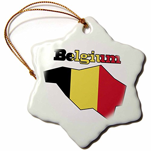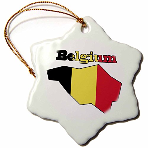 3dRose orn_57054_1 The Flag of Belgium in The Outline Map of The Country and Name Belgium Snowflake Porcelain Ornament, 3-Inch
