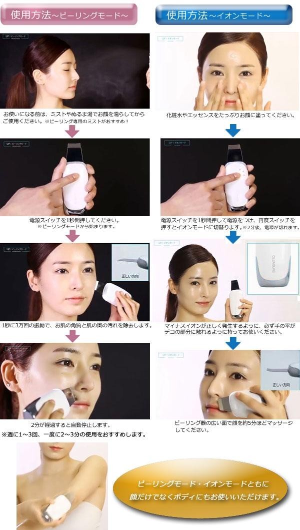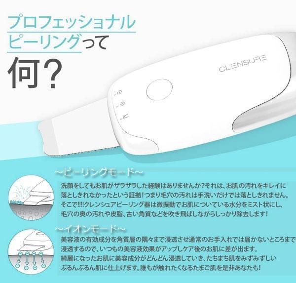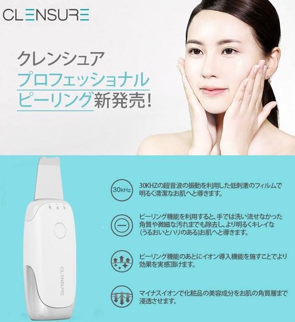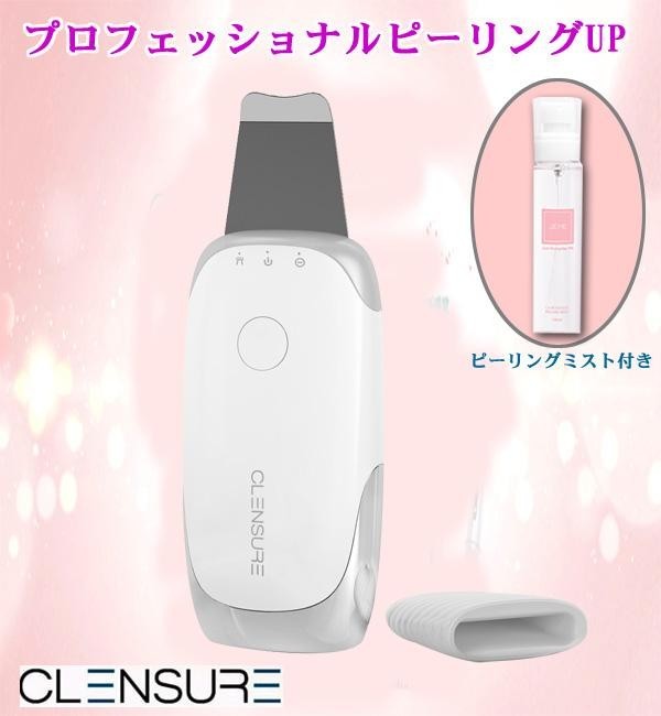 | 韓国で一大旋風を巻き起こしているクレンシュア!!「プロフェッショナルピーリングUP」は、微振動でお肌についている水分をミスト状にし、毛穴の奥の汚れや皮脂、古い角質などを吹き飛ばしながらしっかり除去します。付属の専用ミストと一緒に使用することで、さらに効果UP!!綺麗になったお肌に美容成分がどんどん浸透していき、たちまち肌をみずみずしいぷるんぷるん肌に仕上げます。誰もが触れたくなるたまご肌を是非あなたも♪ |