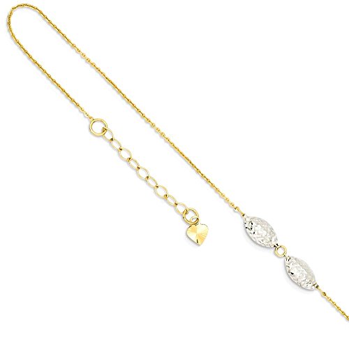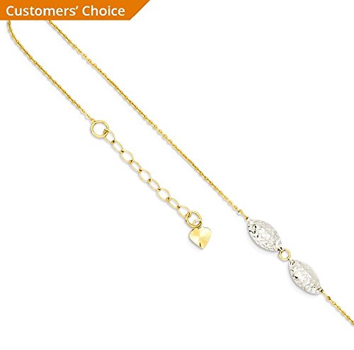 ICECARATS DESIGNER JEWELRY 14K TWO TONE YELLOW GOLD PUFF RICE BEADS 1 INCH ADJUSTABLE CHAIN PLUS SIZE EXTENDER ANKLET FOR WOMEN ANKLE BEACH CHAIN BRACELET