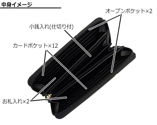 | 仕様 | カードポケット×12 お札入れ×2 小銭入れ(ファスナー式・仕切り1枚)×1 オープンポケット×2 |