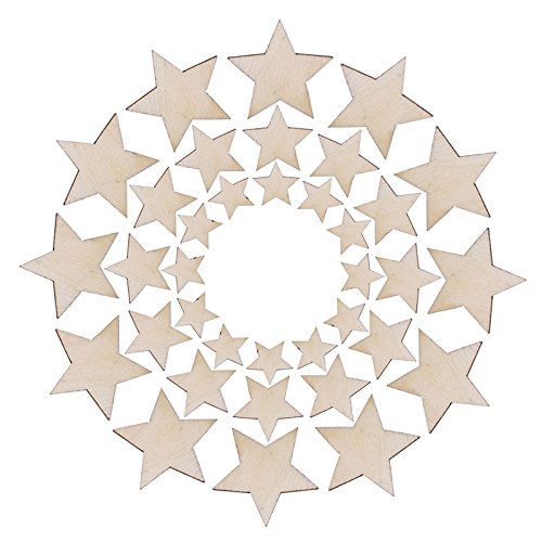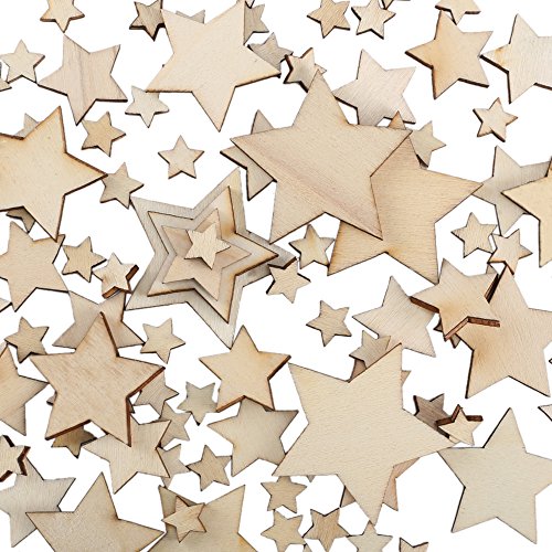 Wooden Star ManYee 100pcs Mixed Size DIY Wood Craft Stars Unfinished Natural Wood Stars Christmas Wood Star Wedding Confetti Table Scatter Decoration