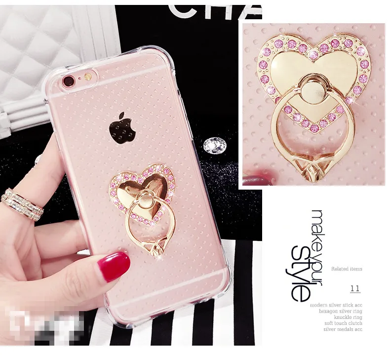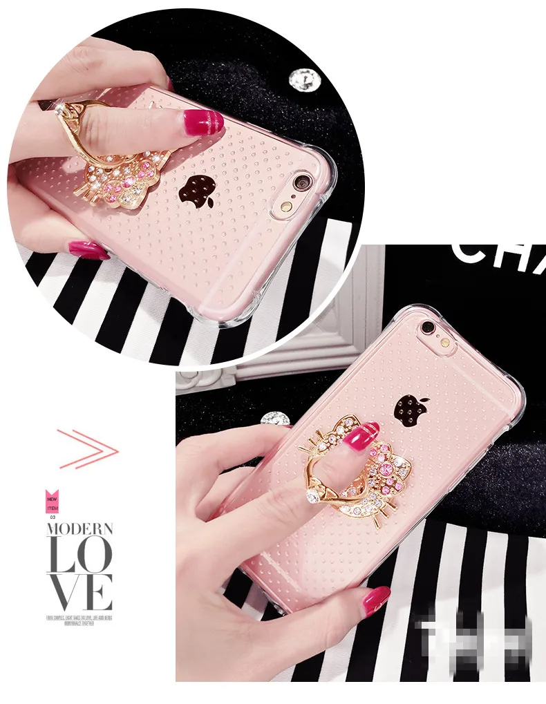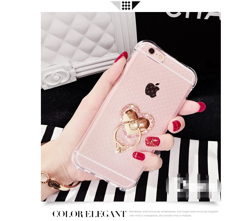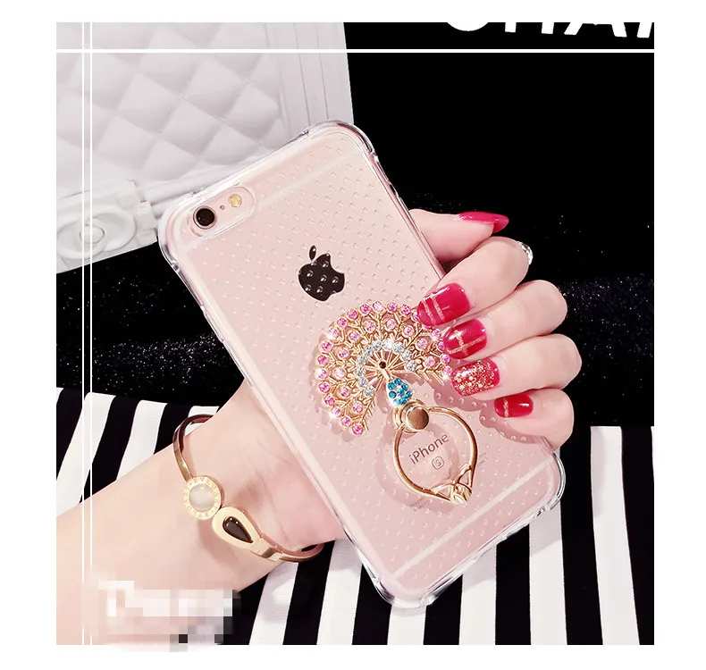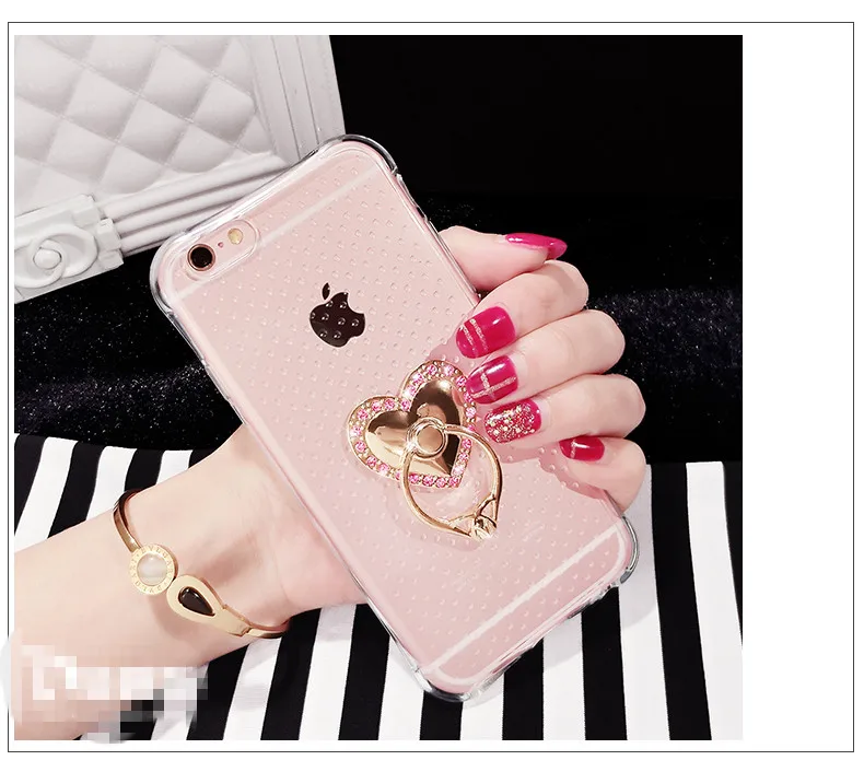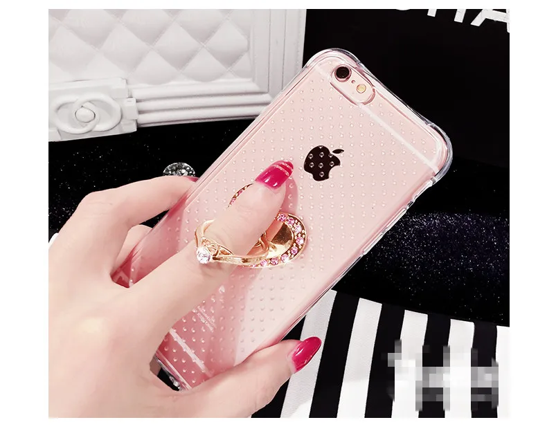 特別デザインアンチノック柔らかいシリコンケースiphone用4 4 s 5 5 s 5se 6 6 s 6 pプラス透明ゲルカバー付きダイヤモンド金属リング