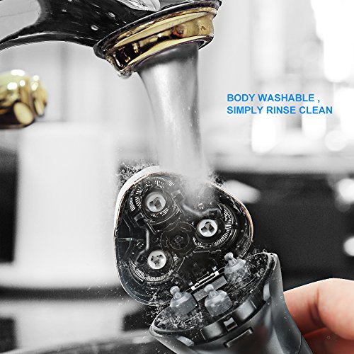 【Waterproof & Quiet Operation】Mens electric razor support Dry and Wet application.Feel free to apply shaving cream before shaving without worrying about damaging device.The blades is detachable,and it's easy to empty the hair from the chamber and rinse under cold running water. Quiet Operation make your kids or babies feel at ease while cutting hairs, not afraid haircut any more.