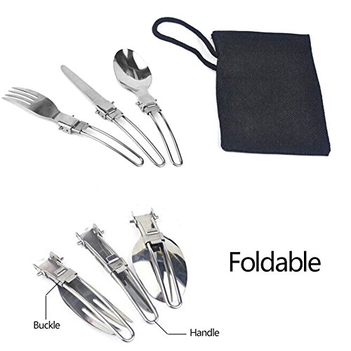 Vanvenkney 3 Piece Foldable Stainless Steel Cutlery Dinnerware Set, Ultra Lightweight And Durable Folding Knife Fork Spoon Set For Home, Travel, Camping In Easy With Store Bag