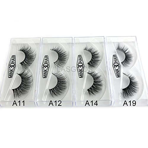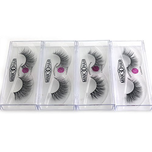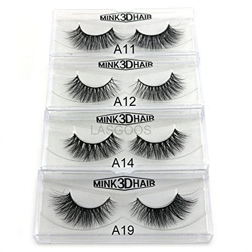 4Box/Lot 3D Real Mink False Eyelashes LASGOOS 100% Siberian Mink Fur Luxurious Fluffy Messy Cross Long 4 Pairs Diffferent Light Weight Fake Eye Lashes...