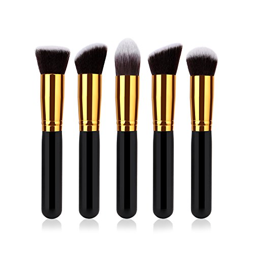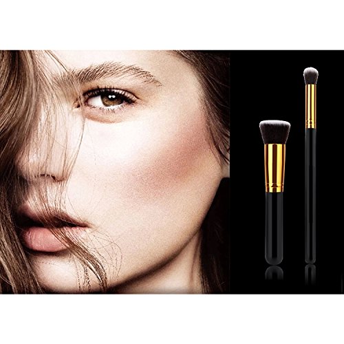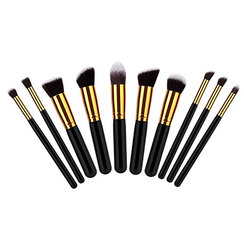 Elemart Premium Kabuki Makeup Brush Set Synthetic Makeup Brush Kit Foundation Blending Blush Eyeliner Face Powder Brush 10pcs (Gold)