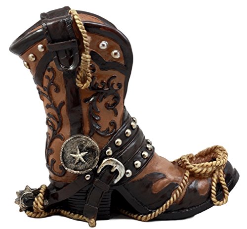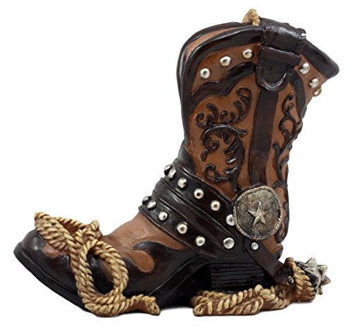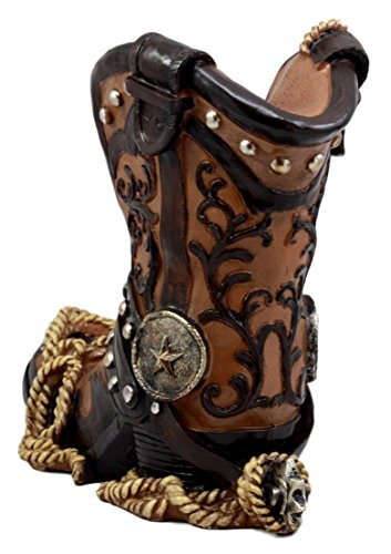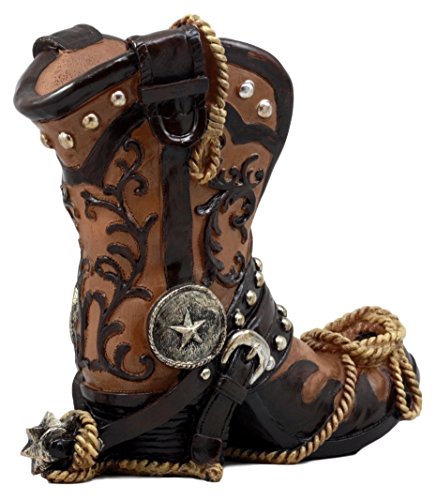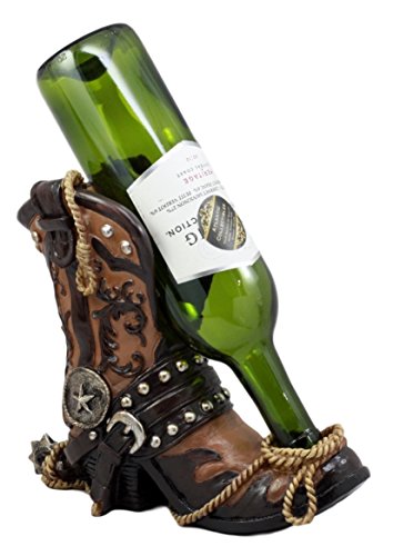 Ebros Gift Western Texas Star Cowboy Boot And Spur Wine Holder 9"H Figurine Wild West Wine Bottle Holder Caddy